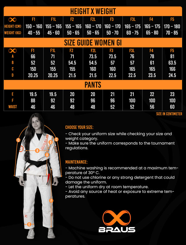 Um Kimono de Jiu Jitsu da BRAUS permite que a lutadora de Jiu Jitsu brasileiro se mova livremente enquanto mostra suas habilidades e técnicas nos tatames. A BRAUS aperfeiçoou a combinação de funcionalidade e apelo visual com esta linha de roupas de luta de BJJ para mulheres.